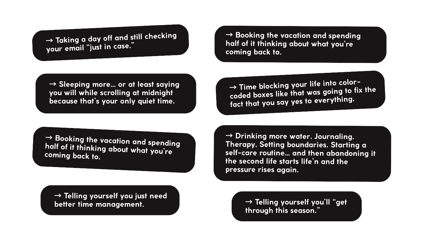 When you were âso gratefulâ and doubled your income but cut your sleep in half and told yourself this is just what leveling up looks like.